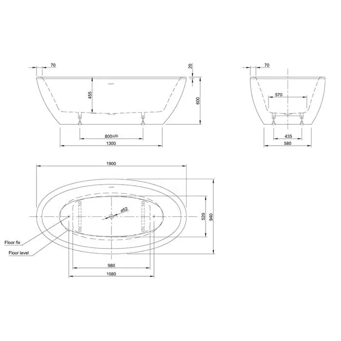 Knief Loom Ванна 190x95x60см., отдельностоящая, с щелевым переливом, цвет: белый