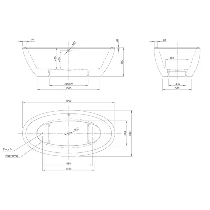 Knief Loom Ванна отдельностоящая 190х95х60см.,без слива-перелива, c комплектом крепления к полу, цвет: белый матовый