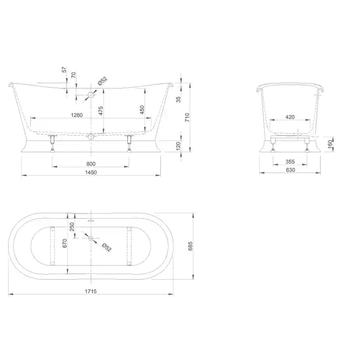 KNIEF Princess I Ванна отдельностоящая 170х70х70см, с акриловым плинтусом, цвет: белый со сливом