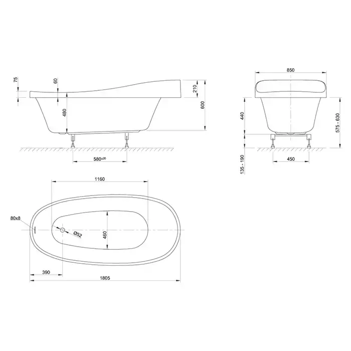 Knief Relax Fit Ванна 0400-268 встроенная 180x85x62см с ножками (перелив стандартный), без слива-перел, цвет: белый (продается со сливом 0100-091-06)