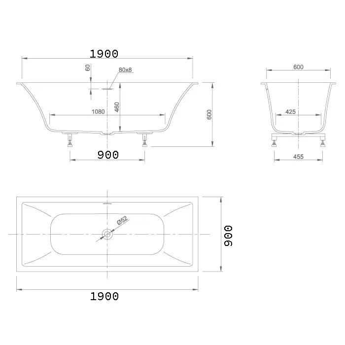 Knief Shape Ванна встраиваемая, 190x90xH60cм., с щелевым сливом переливом click-clack, с к-м ножек, цвет: белая матовая