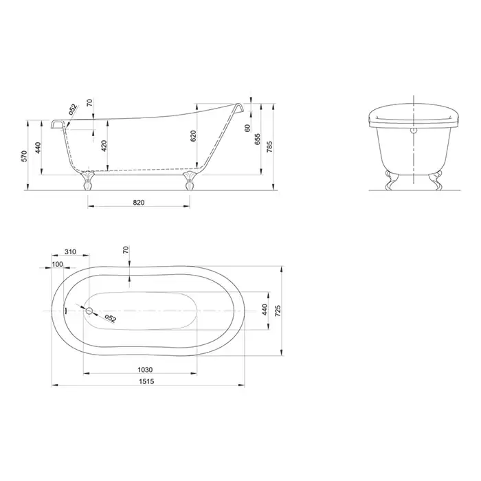 KNIEF Slipper Ванна отдельностоящая 151.5х72.5хh78.5/57см,с 4-мя бронзовыми ножками"лапа с когтями" (продается со сливом 0100-091-01)