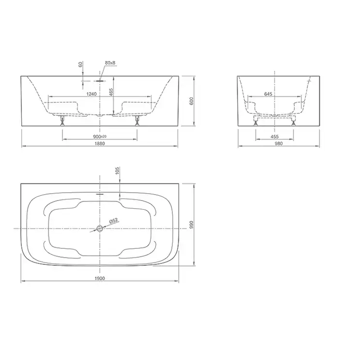 Knief Summer Wall Ванна пристенная 190x100x60см., щелевой перелив, цвет: белый