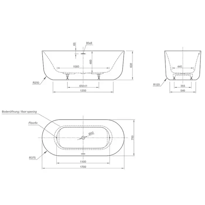 Knief Venice Ванна отдельностоящая 170х75х60см., щелевой перелив, цвет: белая глянцевая