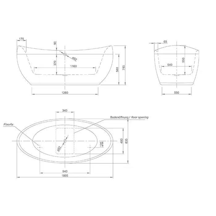 Knief Venice Ванна отдельностоящая 180х83,5х74,5см., с щелевым переливом, с экраном, без слива-перелива, цвет: белый