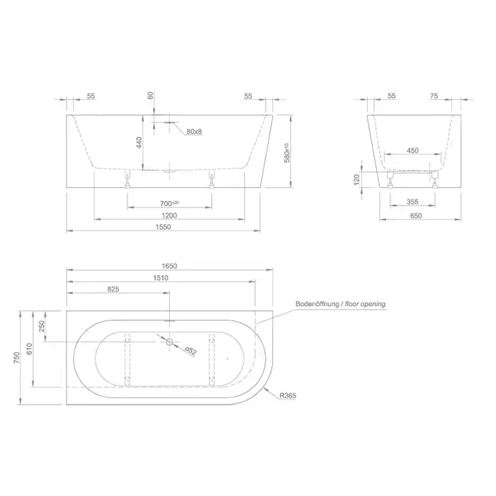 Knief Wall Corner R Ванна в левый угол 165x75х58см., с щелевым переливом, без сл-пер, цвет: белый матовый