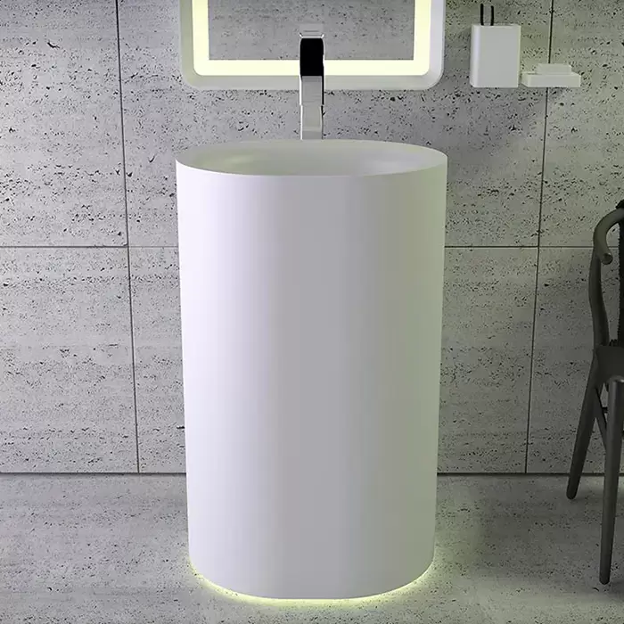 Knife Moon Раковина 55х45хh90см, напольная, с подсветкой, c выпуском белым и сифоном, слив в стену, цвет: белый матовый