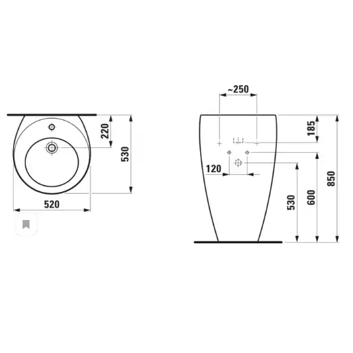 Laufen Alessi One Раковина пристенная 52х53х85 см, 1 отв., покрытие LLC, цвет: белый