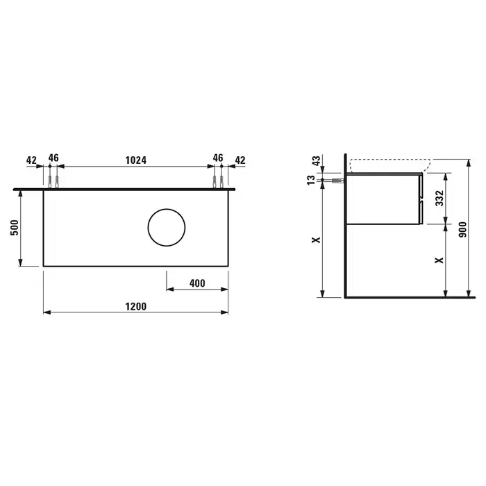 Laufen Alessi One Тумба с раковиной, 120х50х33см, с 4 выдвиж. ящиками, DX, подвесная, покрытие LLC, цвет: орех