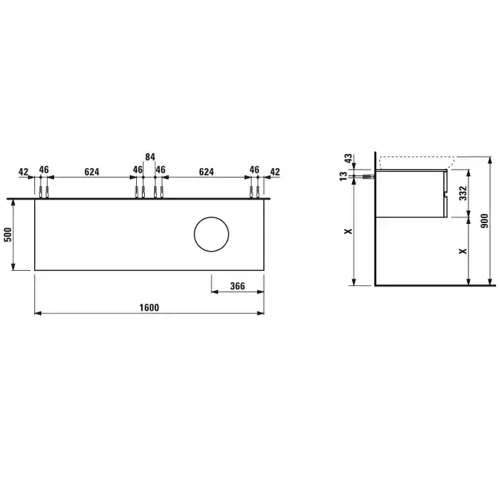 Laufen Alessi One Тумба с раковиной, 160х50х33см, с 4 выдвиж. ящиками, с сифоном, DX, подвесная, покрытие LLC, цвет: орех