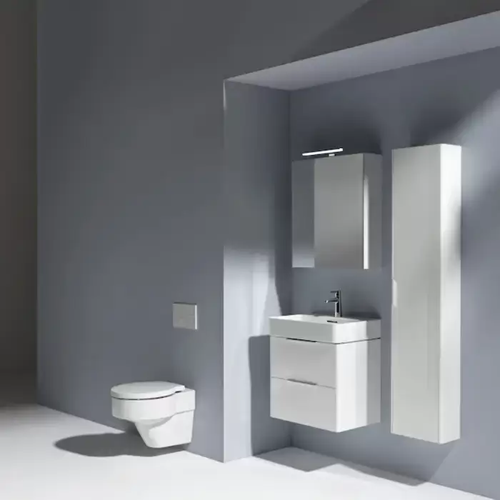 Laufen Base Шкаф зеркальный 60x18.5x70см., 1 дверца, петли справа, LED-подсветка, 2 стеклянные полки, 1 розетка, цвет: белый глянцевый