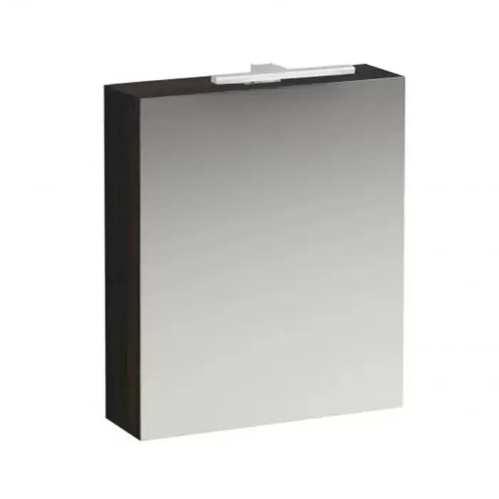 Laufen Base Шкаф зеркальный 60x18.5x70см, 1 дверца, SX, с горизонтальным элементом LED-подсветки, 2 стеклянные полки, 1 розетка, цвет: темный вяз