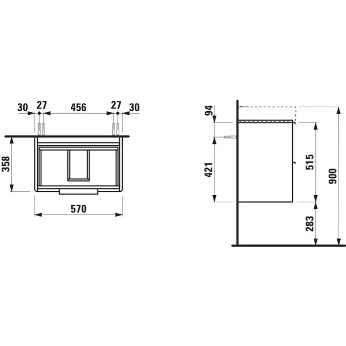 Laufen Base Тумба подвесная 57x36x53см., с раковиной, 2 ящика, цвет: светлый вяз