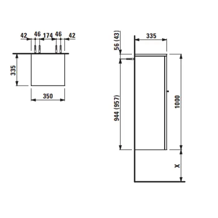 Laufen Case for palace Средний шкаф 35x33.5x100см, DX, 2 стеклянные полки, цвет: мультиколор
