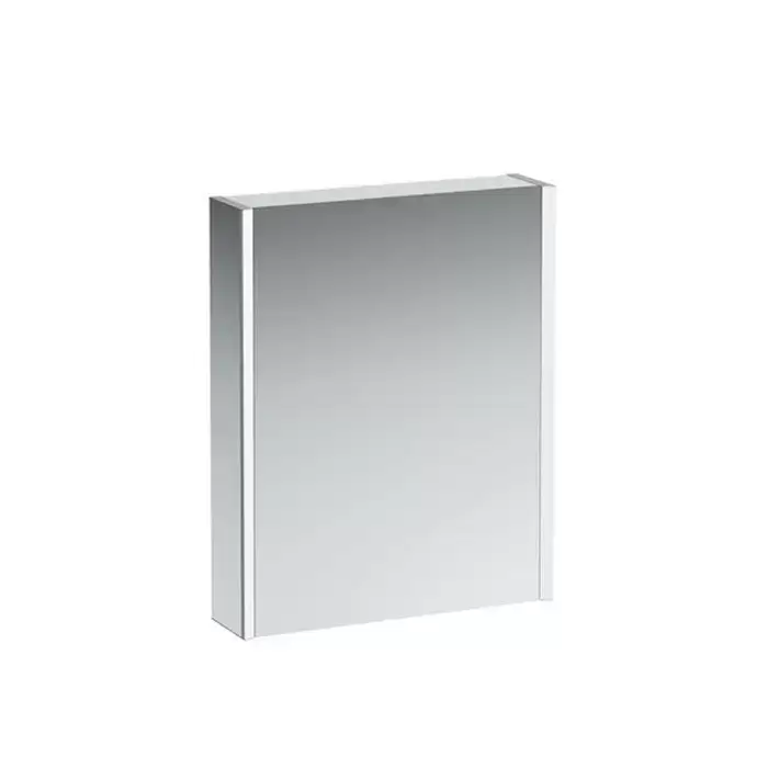 Laufen Frame 25 шкаф зеркальный 60x15x75cм., алюминий, 1 дверца с зеркалом с 2х сторон, DX, сенс. выкл., 2 розетки, 2 верт-х эл-та LED-подсветки (регул-ая яркость), с окружающим освещением (внизу)