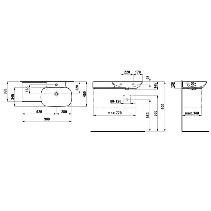 Laufen INO Раковина 90х45х12 см, без отв., полка слева, цвет: белый