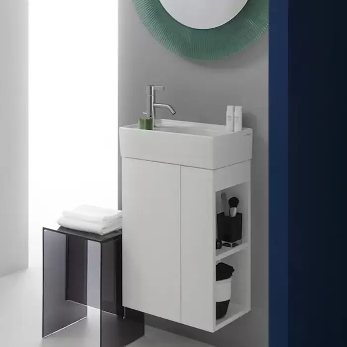 Laufen Kartell Тумба c раковиной 44х27х60см., петли слева, полка открытая справа, цвет: белый матовый