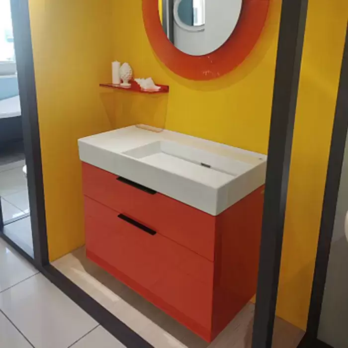 Laufen Kartell Тумба с раковиной, 89.5х45.5х61.5см, с 2 выдвижными ящиками, с сифоном, цвет: оранжевый глянцевый