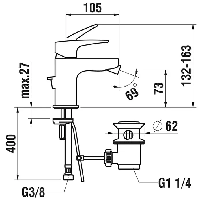 Laufen Laurin Смеситель для биде, 1 отв., с донным клапаном, цвет: хром
