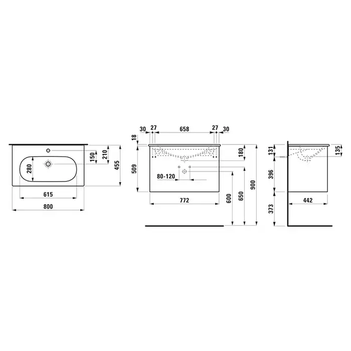Laufen Lua База подвесная 80х45хh52см., с раковиной, с 1 отв., 2 ящика, цвет: белый матовый