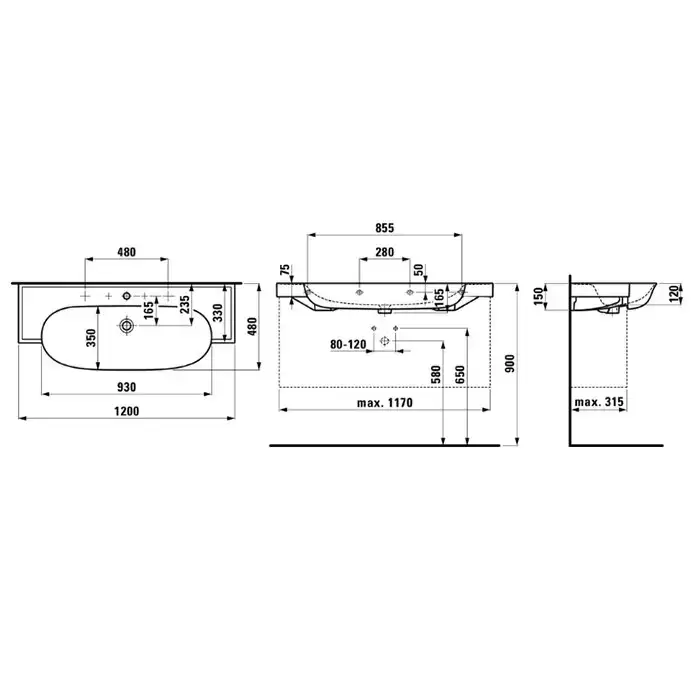 Laufen New Classic Раковина 120х48х16.5 см, 2 отв., цвет: белый матовый