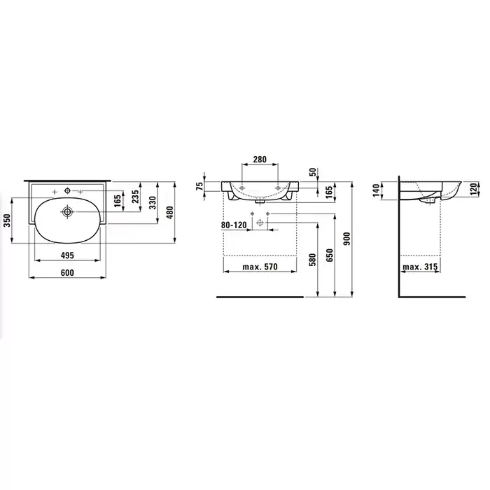Laufen New Classic Раковина накладная 60х48х7.5см., с 3 отв., с переливом, с покрытием Clean Coat LCC, цвет: белый