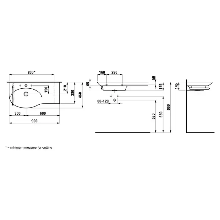Laufen Palace Раковина 90х46см, без отв., без перелива, столешница справа, цвет: белый