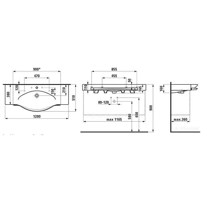 Laufen Palace Раковина консоль подвесная/накладная 120х51см, с 1 отв., c полотенцедержателем, цвет: белый