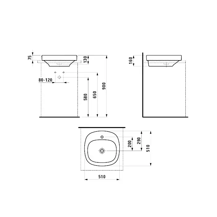 Laufen Palomba Раковина 51см., встраиваемая сверху, 1 отв., цвет: белый
