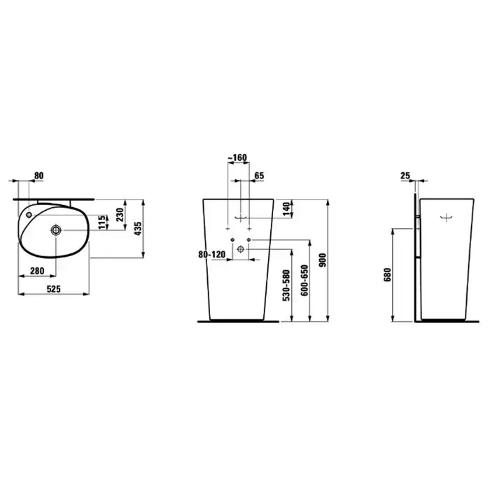 Laufen Palomba Раковина 52.5х43.5х90 см, без отв., покрытие LLC, цвет: белый