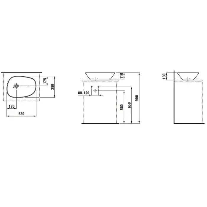 Laufen Palomba Раковина-чаша 52х38х13 см, без отв., без перелива, покрытие LLC, цвет: белый