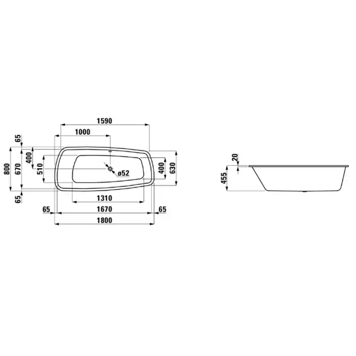 Laufen Palomba Ванна 180x80x45.5см, встраиваемая, ассиметричная, без слив-перелива, борт 2см, материал: акрил, цвет: белый