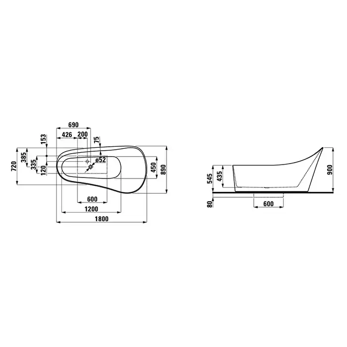 Laufen Palomba Ванна 180x89x54см, свободностоящая, из материала Sentec, цвет: белый