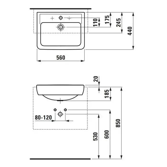 Laufen Pro A Раковина 56x44x11.5см., полувстраиваемая, 3 отв., цвет: белый