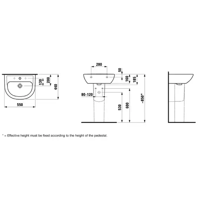 Laufen Pro Раковина 55х44х16 см, подвесная., с 1 отв., по центу, c переливом, цвет: белый
