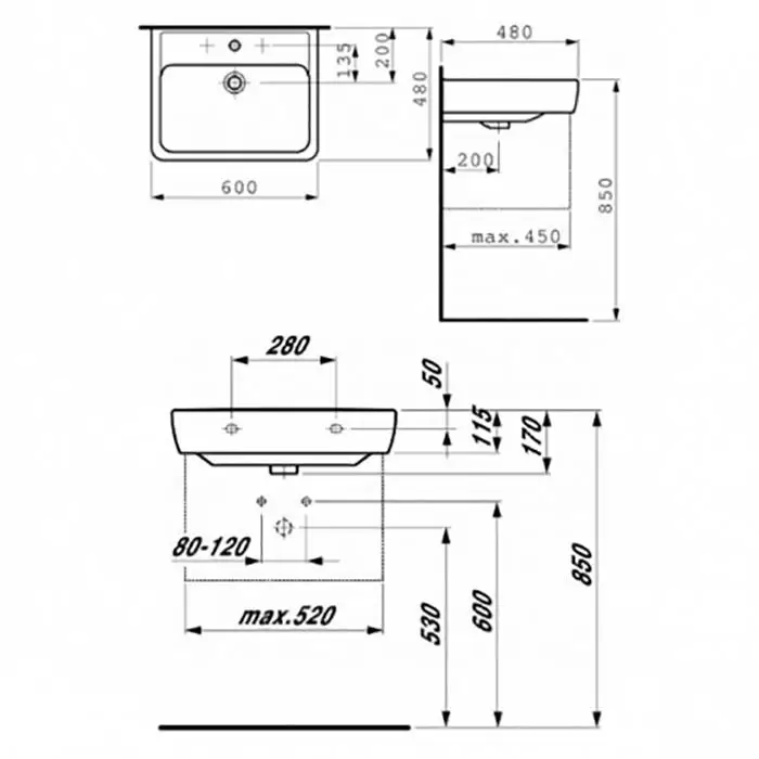 Laufen Pro Раковина 60х48х11,5 см,подвесная/накладная с 1 отв. под смеситель по центу, c переливом, цвет: белый