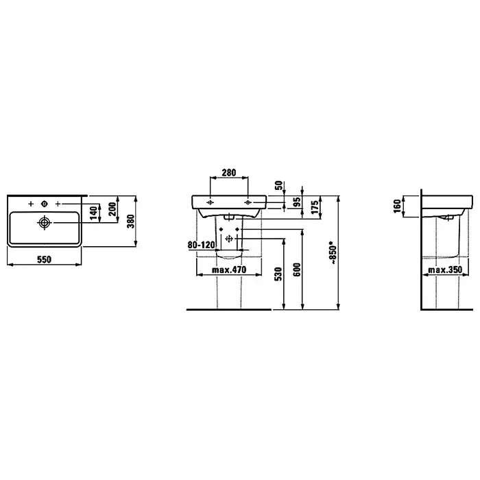 Laufen Pro S Раковина55х38х9,5 см,подвесная/накладная с 1 отв. под смеситель по центу, c переливом, цвет: белый