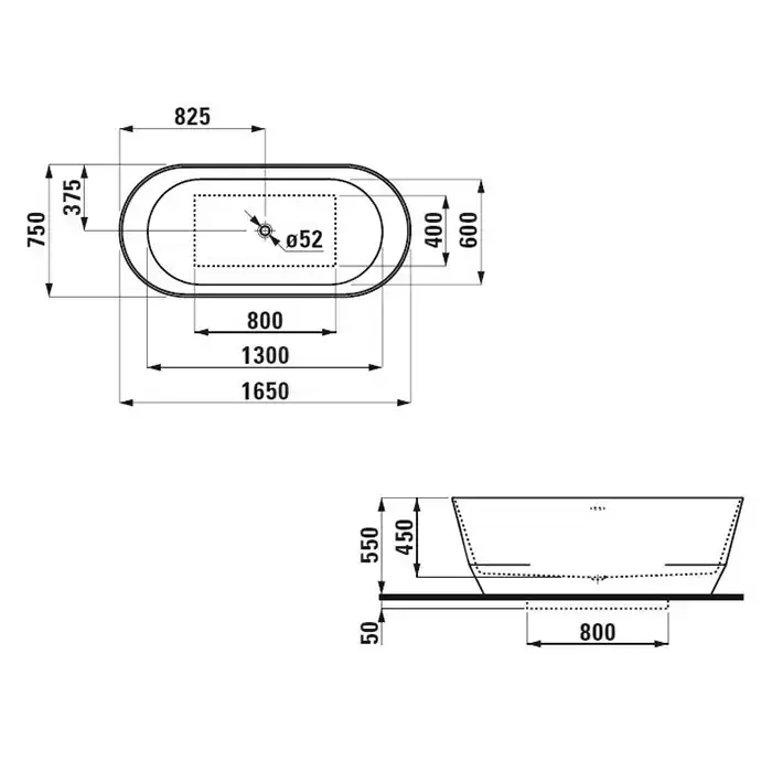 Laufen Pro Ванна отдельностоящая, 165х75см., слив click-clack, цвет: белый