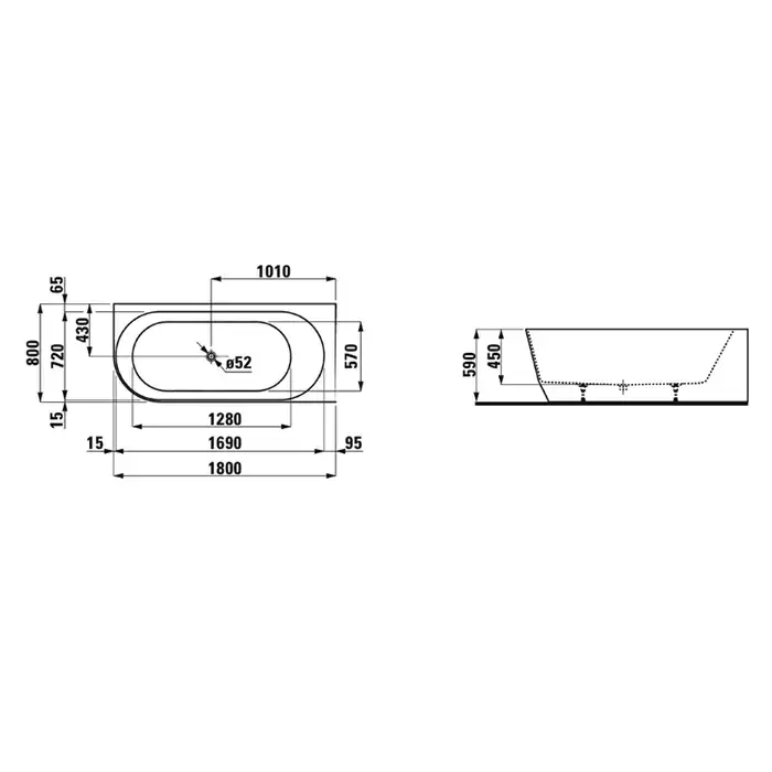 Laufen Pro Ванна угловая 180x80x59см., DX, цвет: белый