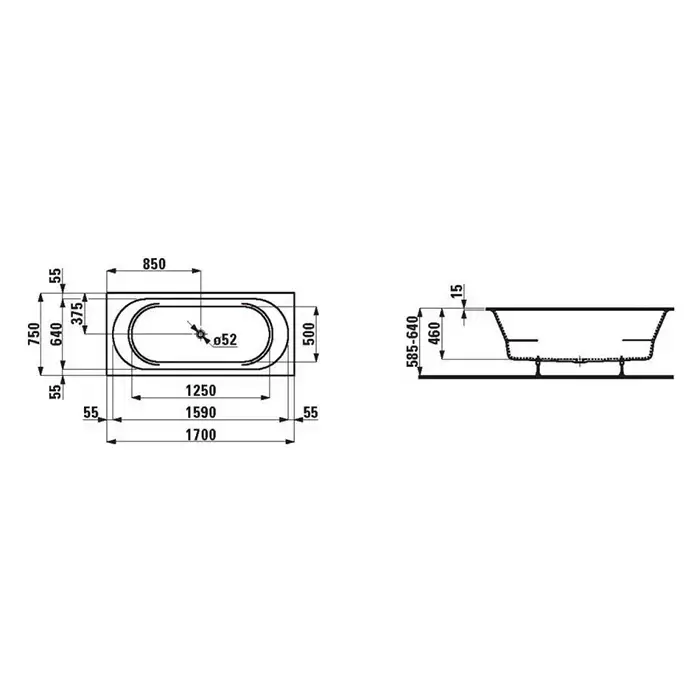 Laufen Pro Ванна встраиваемая, 170x75см., прямоугольная, цвет: белый