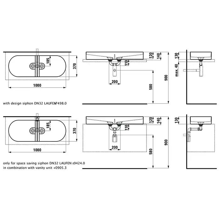 Laufen Sonar Раковина 100x37x13см., двойная, накладная, без отв., без перелива, цвет: белый матовый