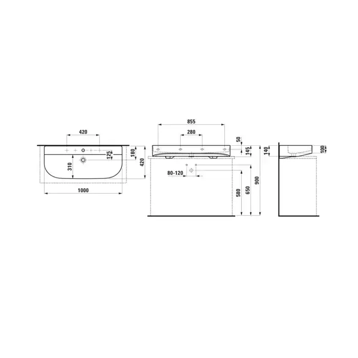 Laufen Sonar раковина для установки на поверхность 1000x420x140 мм, отверстие для смесителя по центру, белый