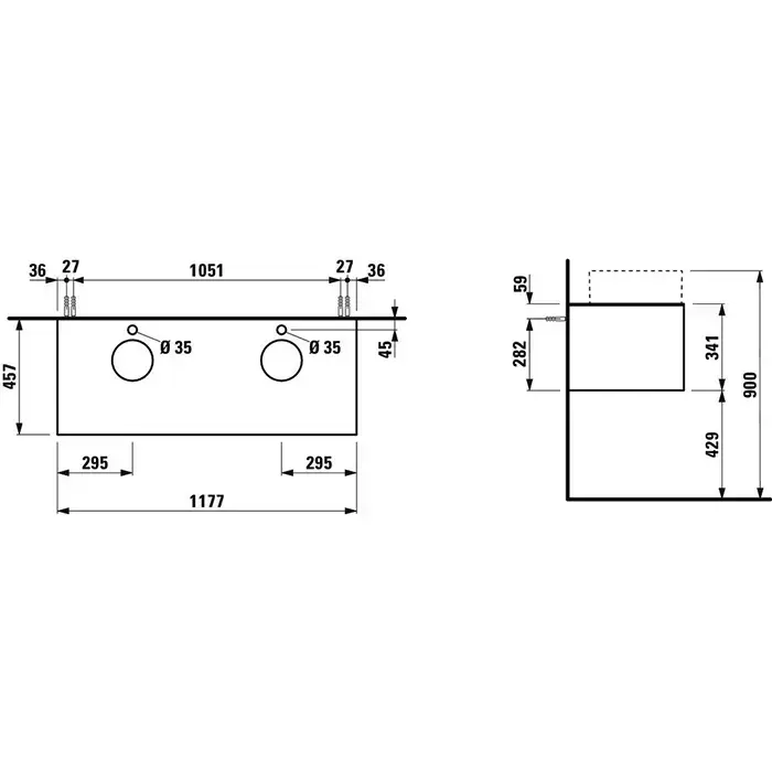 Laufen Sonar Тубма под раковину, 117.5х45.5х34см., 1 ящик, с отверстием слева/ справа, с отверстиями под смесители, совместим с раковинами-чашами 812340, 812341, 812342, 812343, цвет: медь/черный мрамор