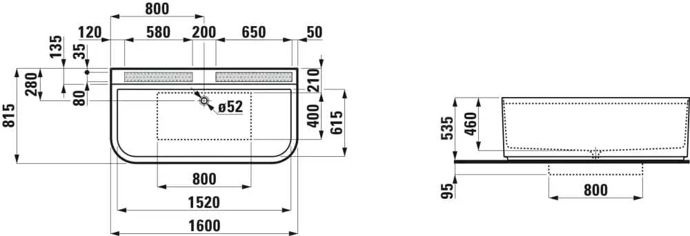 Laufen Sonar Ванна 160x81х53см, пристенная, 5 отв., со слив-переливом, материалл: Marbond, цвет: белый