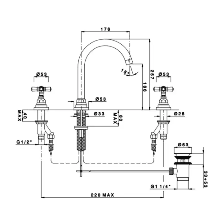 Nicolazzi Agora Смеситель для раковины на 3 отв. излив 17.6см., цвет: черный матовый