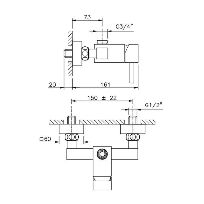 Nicolazzi Antelao Смеситель для душа на 2 отверстия, настенный, вывод сверху 3/4", цвет: хром