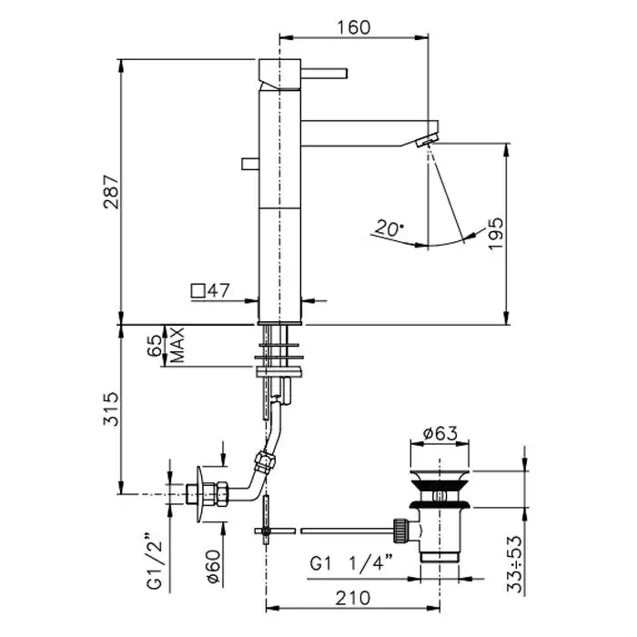 Nicolazzi Antelao Смеситель для раковины высокий на 1 отверствие с донным клапаном, излив: 160 мм, цвет: хром