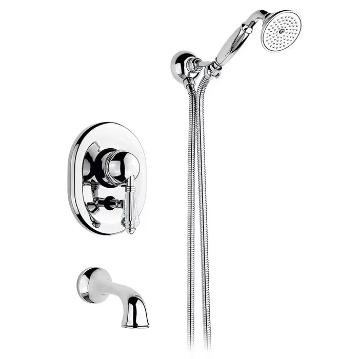 Nicolazzi Cristallo Liberty Смеситель для ванны однорычажный, встраиваемый, с изливом 160мм и ручным душем, цвет: хром