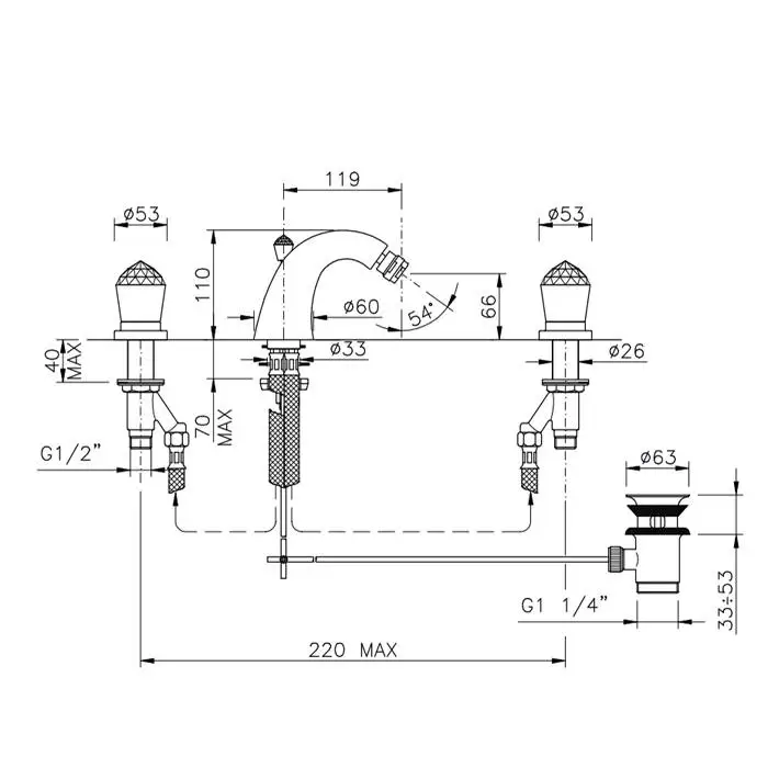 Nicolazzi Cristallo Смеситель для биде двухвентильный на 3 отверстия, излив: 119мм цвет: хром