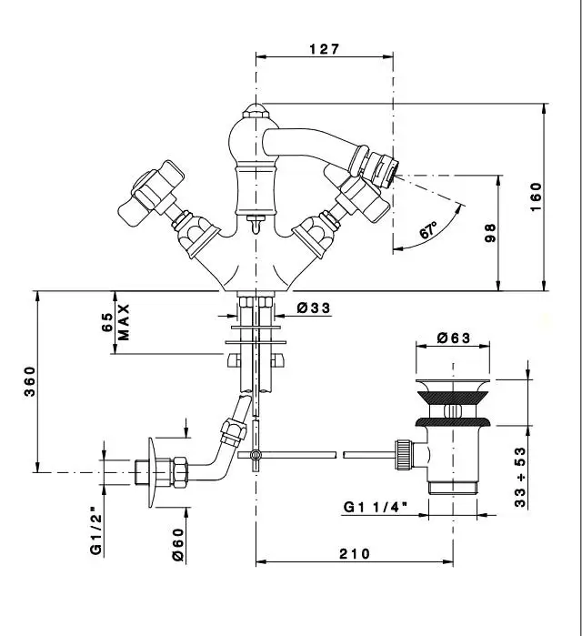 Nicolazzi Dames Anglaises Смеситель для биде с 2мя ручками, на 1 отв., с донным клапаном, излив 127мм, цвет: золото